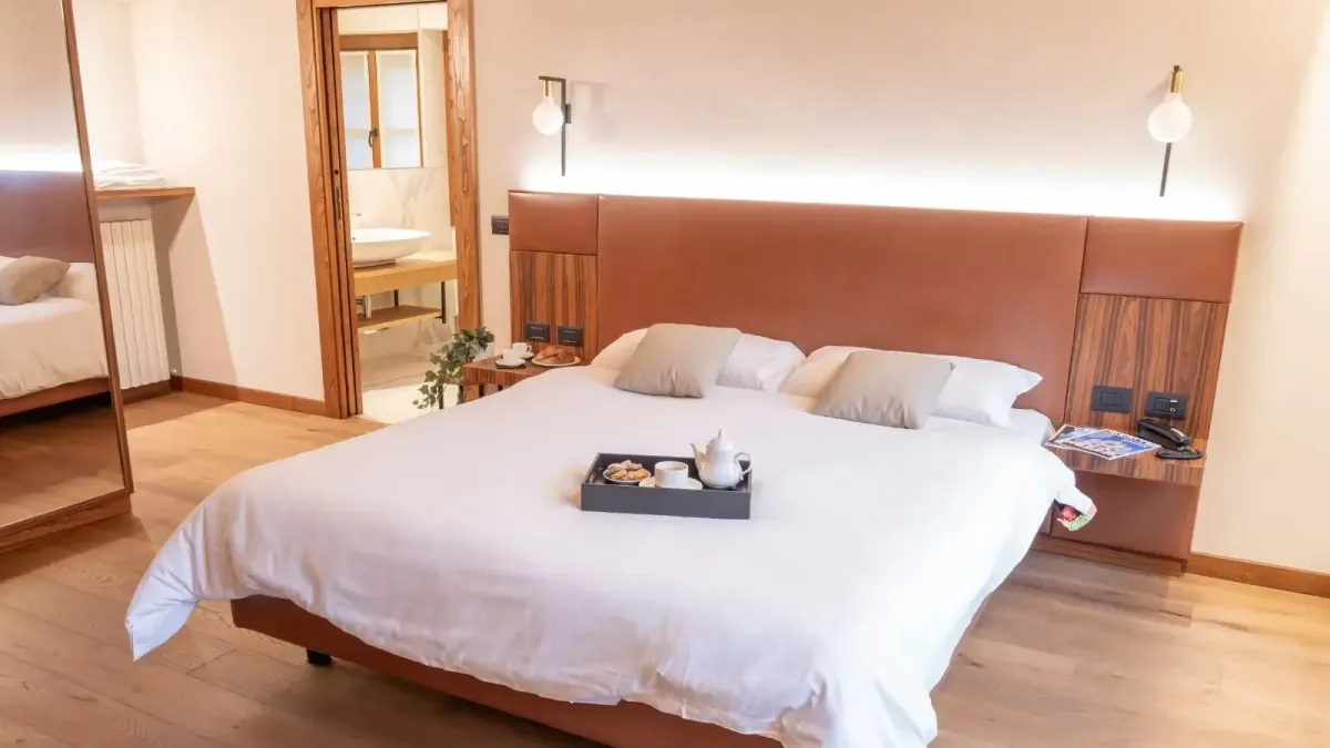 Presso Rosa delle Alpi ti accogliamo in 12 camere completamente ristrutturate, ognuna con bagno privato, materiali naturali, atmosfera rilassante e vista sulle montagne e sul bosco. Abbiamo creato tre categorie per offrirti un soggiorno su misura — due già disponibili, mentre la terza, con terrazzo privato e jacuzzi esterna, sarà prenotabile a breve.
